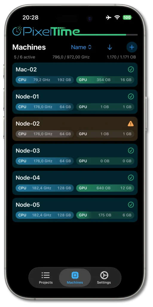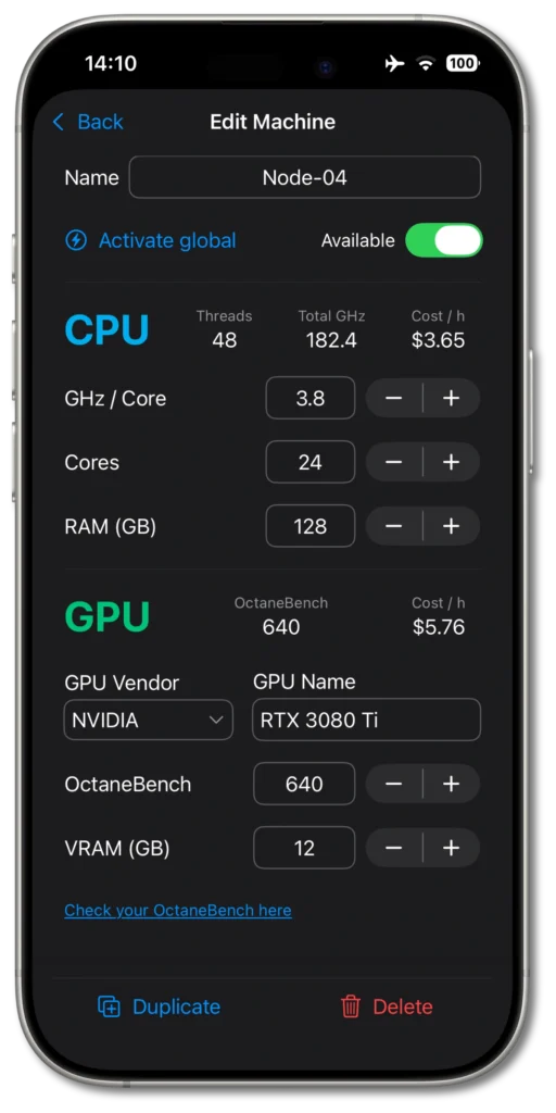 Configure each machine (Name, CPU & GPU) and activate them based on availability.