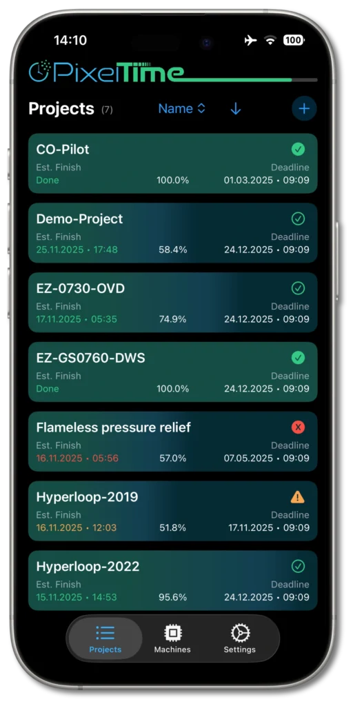One project or many – the project list gives you a clear view of all deadlines, remaining time and progress.